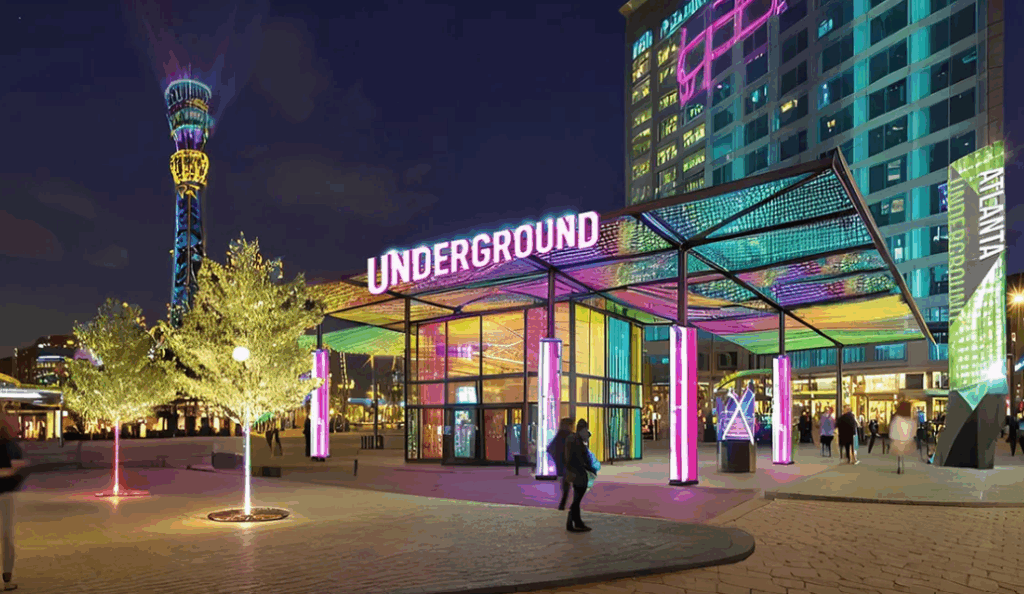 As Atlanta prepares to host the 2026 FIFA World Cup, the city is moving forward with a major revitalization effort in the historic Underground Atlanta district. New pedestrian-only streets, streetscape improvements, lighting, greenery, and adaptive reuse projects are reshaping the four-block area to improve walkability, accessibility, and everyday use for residents and visitors alike.