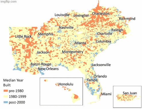 Across the Southeast, the age of our housing stock plays a major role in energy costs and affordability. Roughly 40% of homes were built before 1980, often before modern energy codes were in place, and rural communities are especially impacted, with some areas where 40% or more of homes were built before 1960. Without efficiency upgrades, residents in these older homes are more likely to face higher energy bills.